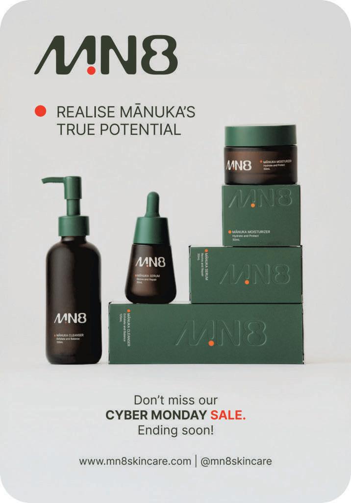 facilities, while MN8 Skincare has formulated a premium skincare range that combines their FullSpectrum Mānuka Extract with New Zealand’s favourite healing botanicals