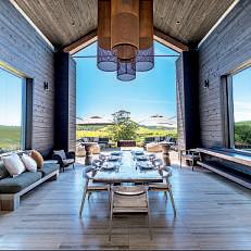 Sited on a hillside, the winery takes in tranquil views of the vineyard, lake and rolling pastures In summer, the downstairs Tasting Room is the ideal place for long lunches and tastings as sea breezes blow through the open-air space If the weather isn’t playing ball, the upstairs Wine Library is a cosy retreat, decorated in rich timbers with fine art pieces and an archive of wines on display