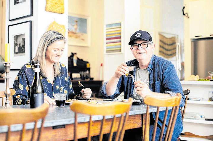 Clockwise from main: Al Brown in his favourite space; an eclectic range of artwork livens up the dining area; Al likes nostalgia-infused decor; Maude Wines’ Sarah-Kate Dineen and Al share a meal