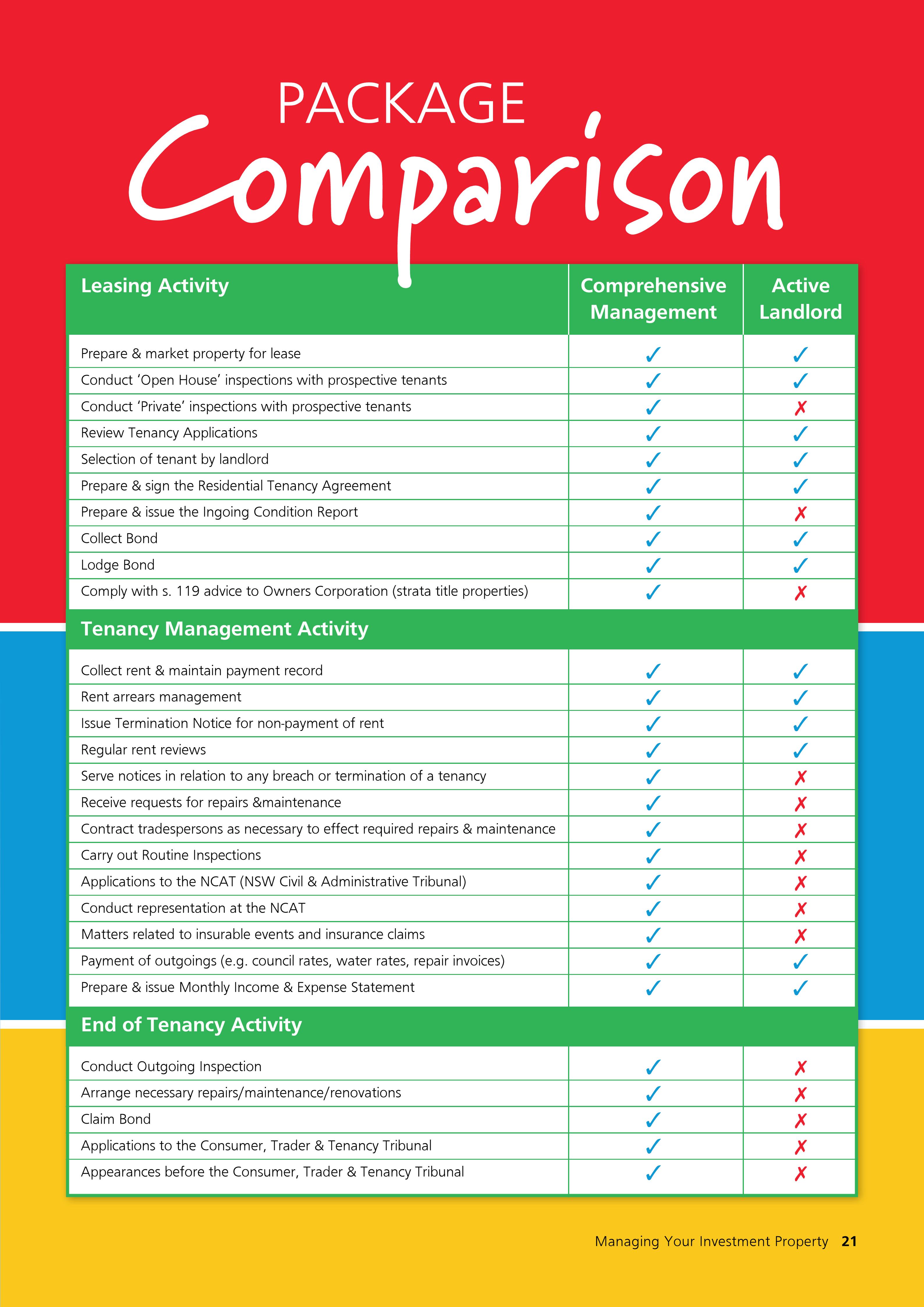 The active Landlord stays in a high degree of control by staying in touch with the tenant and arranging all repairs, carrying out and completing all inspection reports (Ingoing, Outgoing and Routine), responding to any issues the tenant may be having and also attending NCAT should it be required.