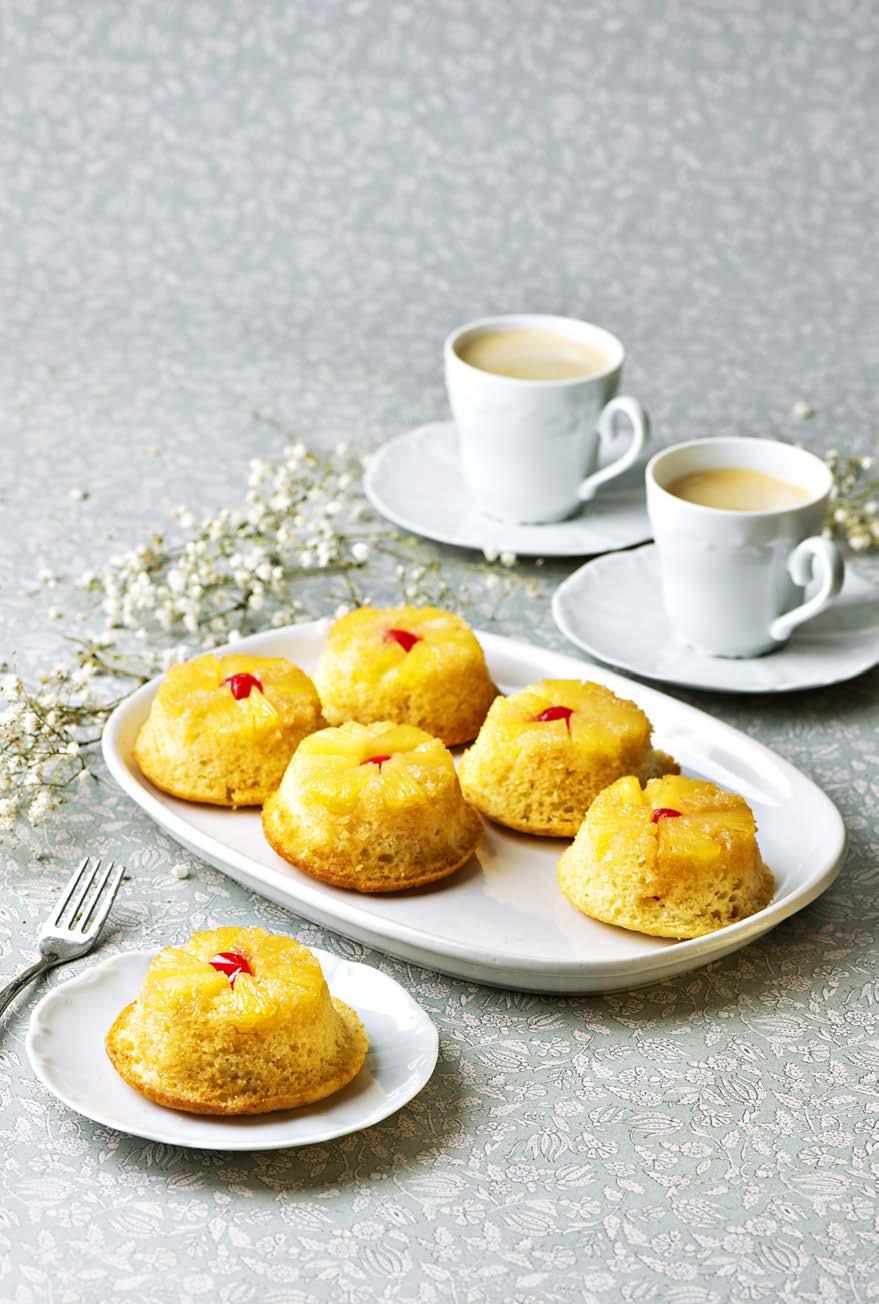 Muffinite küpsetamine on lihtne ja nii saab hõlpsasti valmistada mahlaka ja maitsva tee või kohvikõrvase. Tagurpidi keerates jäävad ananassitükid ja kokteilkirss lilleõiekujulisena muffini pinnale.