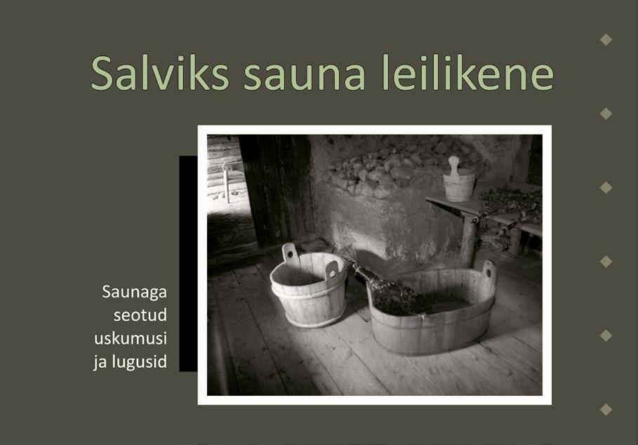 elevil. Sauna põrandad küüriti puhtaks, eesruumis olevad põrandatekid ropsiti. Vahest tõin meelespealilledki pudelisse torgatuna riietusruumi aknale. Ega need seal kaua ilusana küll seisnud. Suvisel ajal käidi karjamaalt kasevihta sauna jaoks tegemas, lastele olid ka omad, väikesed vihad. Talvel võeti kuivad vihad eest kuurist parsilt.