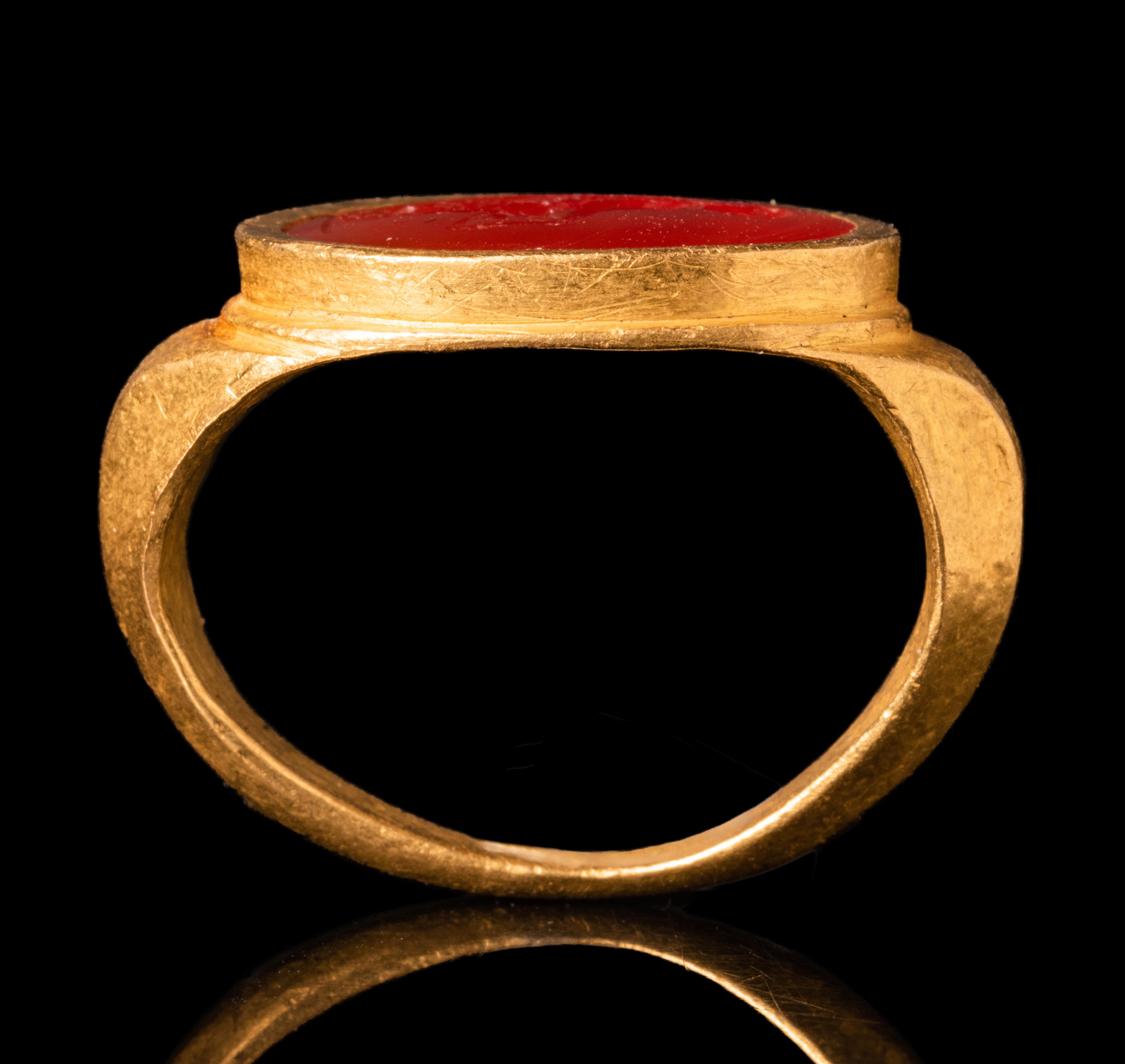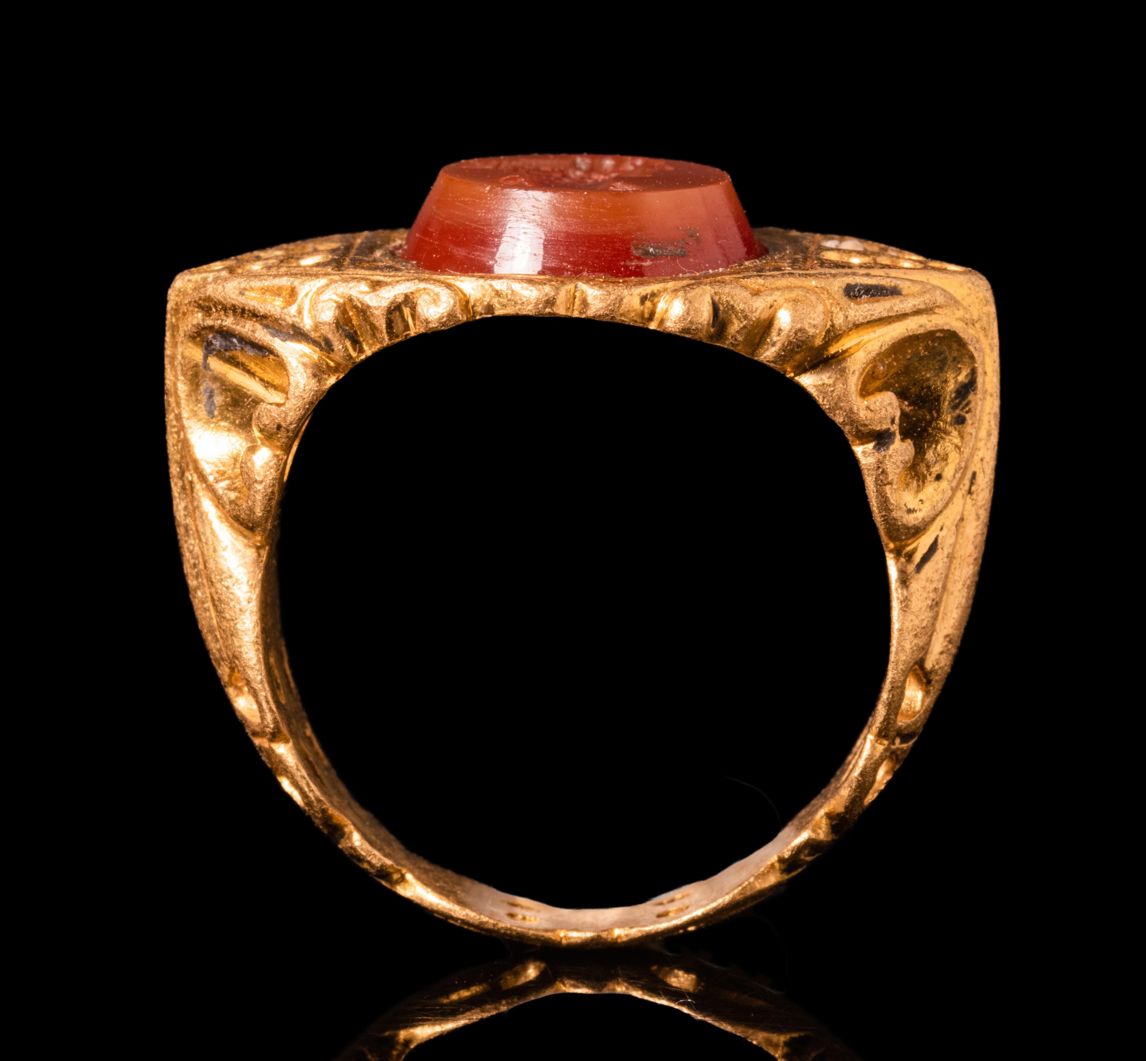 ROMAN GOLD RING WITH CARNELIAN PORTRAIT INTAGLIO