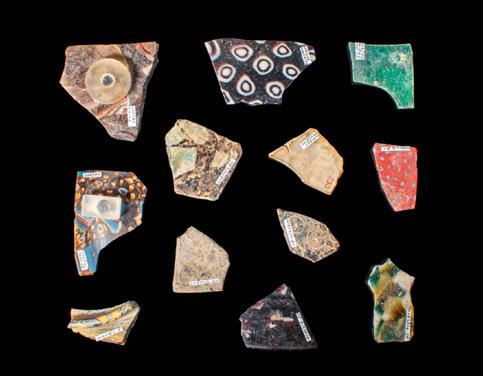A collection of three pottery fragments. The first fragment on the left depicts stylised foliate patterns. The second fragment is from a bowl with a partial roundel containing the Arms Bearer’s Arms. The third fragment has blue and white decoration. The fourth fragment of irregular circular form. It is made from red earthenware and is incised in yellow and brown glaze with a roun- del bearing a cup. The base has some remains of glaze. Exhibited in the Austrian Summer Exhibition 2007 and published in the catalogue Kreuzritter Exhibition at Schallaburg, Austria, 2007 p. 242/ 243. Exhibited in the Austrian Summer Exhibition 2007 and published in the catalogue Kreuzritter Exhibition at Schallaburg, Austria, 2007 p. 242/ 243.