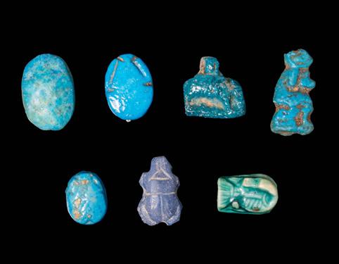 13 COLLECTION OF EGYPTIAN FAIENCE FLOWER-SHAPED AMULETS
