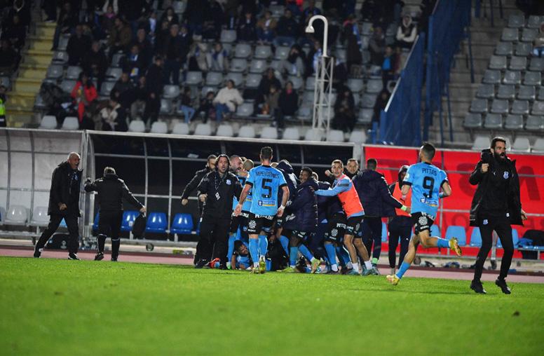 Ποδοσφαιριστές της ομάδας μας πανηγυρίζουν μπροστά στη δυτική το γκολ του Κρισμάρεβιτς