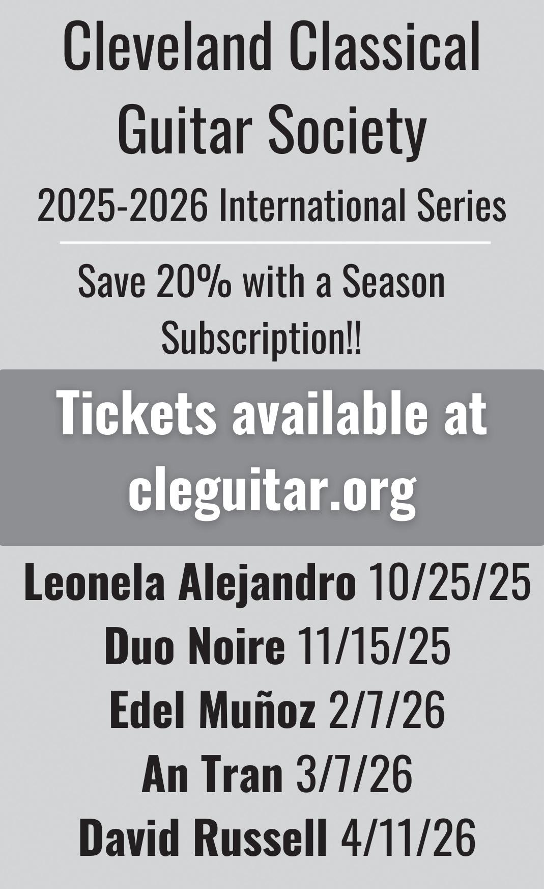 Friday, November 7, 7:30pm St. Bernard's Church, AKRON Saturday, November 8, 7:30pm SEVERANCE MUSIC CENTER, CLEVELAND