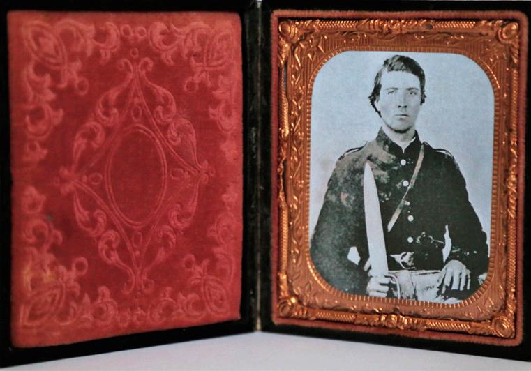 It was the custom for Confederate soldiers to have their portrait taken and mounted in small frames for their families to keep. Here is a photo mounted in a Civil War era frame by Milton Historical Society Board of Directors member Jim Farris. The left side of the frame is velvet material.