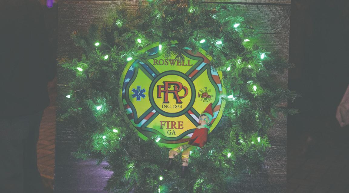 The Roswell Fire Department displays the wreath with green lights at the Dec. 2 Christmas Tree Lighting at the Heart of Roswell Park. The wreath served as a symbol of fire safety for the holidays.