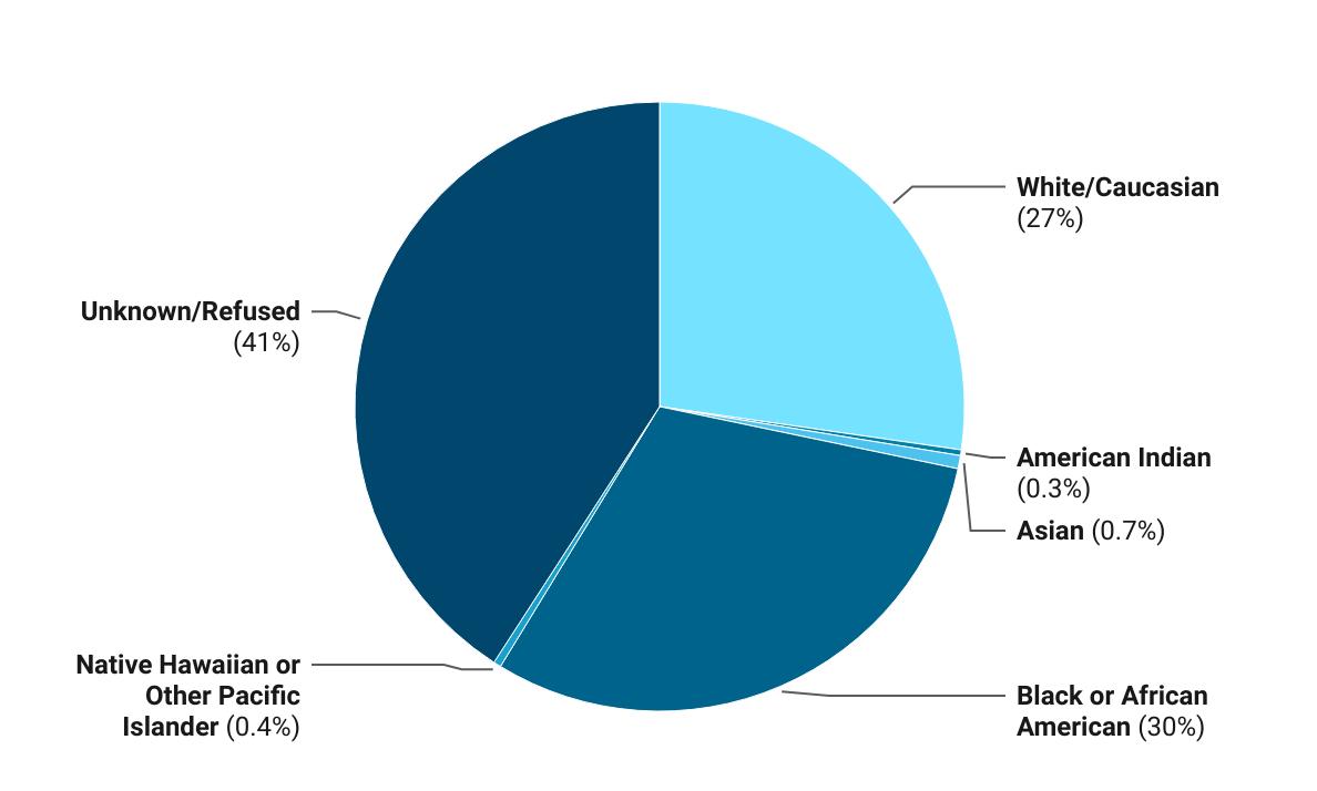 On race, the Census data showed most individuals who had crisis episodes were White. Meanwhile, over 30 percent of call ers were Black/African American, which is the largest identified population by race. Peel said there has been an increase in suicide attempts and death by suicide for the Black population since 2020.