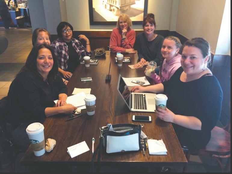 Barbara Gomes Serafino, left, meets with other members of the Forsyth Writer’s Club at Starbucks for its monthly meeting. Amy Lyle, who has two books out for purchase, formed the club nearly seven years ago to create a space of support for up-and-coming authors.