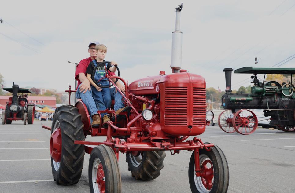 Alan Sutton and his grandson Asher Sutton ride a Farmall Super A during the Antique Tractor and Gas Engine Expo at the Cumming Fairgrounds Nov. 8. See TRACTOR, Page 15