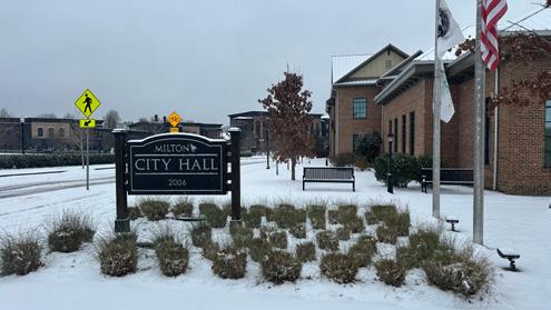 Snow blankets Milton’s picturesque downtown Crabapple District early Jan. 10. The winter storm draped some areas of Metro Atlanta and areas north with more than 2.5 inches of snow, the heaviest recorded in more than a decade. Schools, government offices and many businesses closed as icy roads made travel hazardous. See more winter weather coverage at appenmedia.com.
