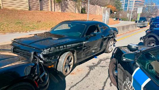 A Jan. 2 Facebook post from the Sandy Springs Police Department shows the aftermath of a PIT maneuver at Ga. 400 and Glenridge Connector, involving a Dodge Challenger fleeing a Roswell traffic stop. The occupants of the vehicle were arrested on outstanding warrants.