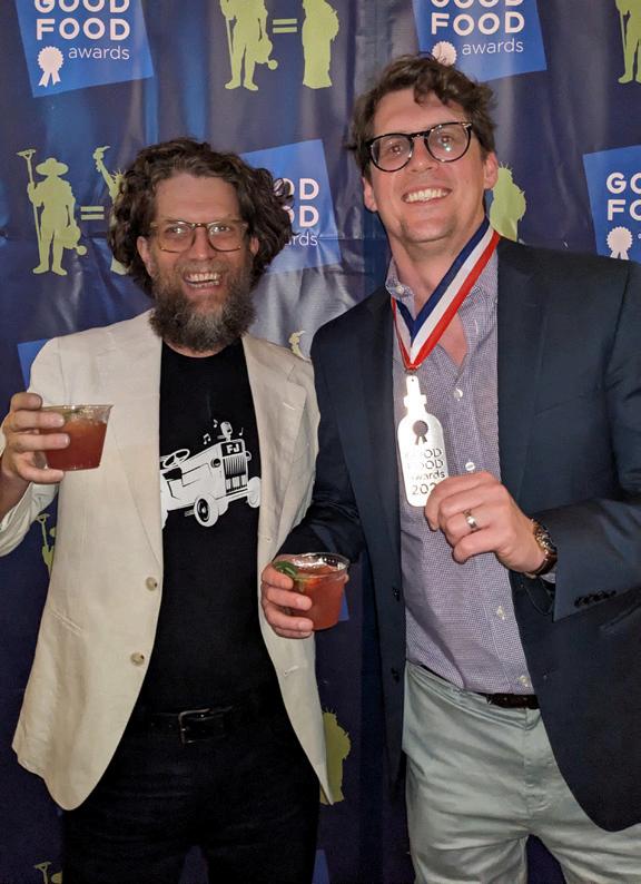 Jason Waters and James Carr, Milton graduate and founder of Atlanta-based Farms Jam, celebrate the business’ 2024 Good Food Award in the Elixir category at a ceremony in Portland, Oregon. Waters is the owner of Georgia Routes, a mobile bar that uses Farmers Jam cocktail syrups.