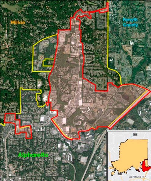 The study area surrounds Milton’s 3.3-mile segment of Ga. 9 from its