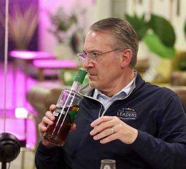 Reynolds breaks open the first bottle and pours them each enough for three sips: the first to acclimate the taste buds, a second that should coat one’s mouth and allow them to start noticing hints of what’s in the drink, and the third sip that will provide the full flavor profile.