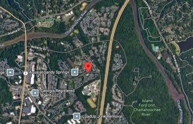 A red pin marks the location where an armed man allegedly shot a Sandy Springs police officer just before noon Oct. 14 at Carroll Manor Drive and North River Parkway. The Sandy Springs Police Department announced the suspect was in custody after 2:30 p.m.