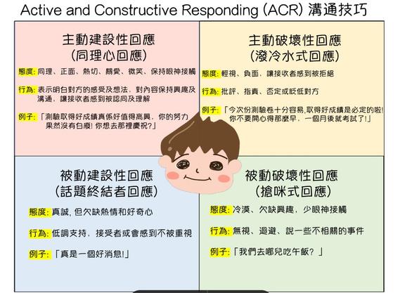 11 學童學習如何接納和尊重他⼈的想法和感受、同理⼼回應和正向溝通法。 學童學習如何運⽤同理⼼回應,以更有效地與他⼈溝通和建⽴積極的⼈際 關係。同時運⽤正向溝通法更好地表達⾃⼰的想法和感受,有助於他們的 學習和⽣活。。