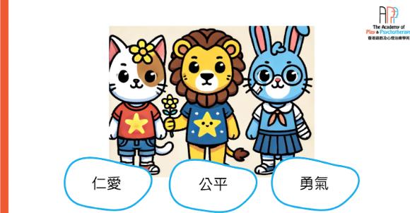 *講者以欣賞故事⼈物的品格強項作例⼦,從而讓學童嘗試發掘⾃⼰的強項。