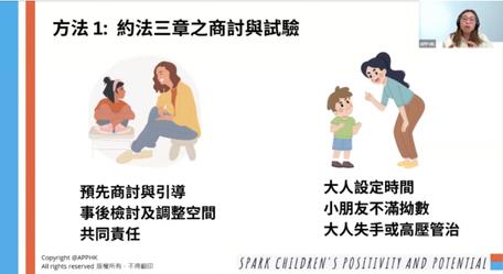工作坊由兩位輔導員通過對談形式開展,面向教養中常出現分歧的 父母。講座旨在探討伴侶教養意見不合時,如何理解彼此立場、減 少衝突,並協商出共同教養大原則,同時分享實戰中有效的溝通步 驟,幫助父母拉近距離、做出相應調整,最終為孩子營造和諧的家 庭成長氛圍。