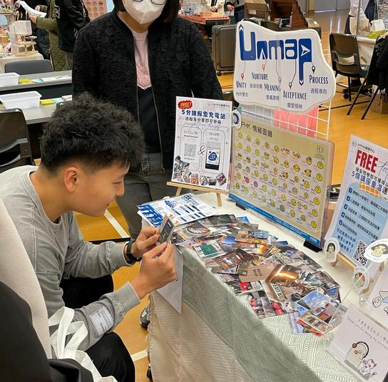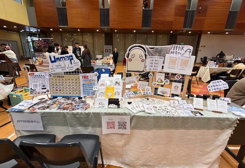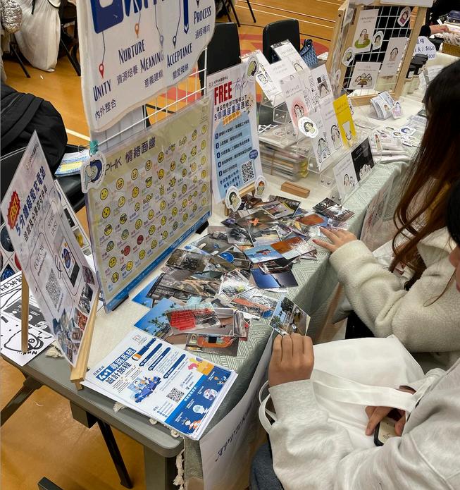 *「心靈探索之旅玩·學市集」的布景版。 *APPHK在市集中的攤位。
