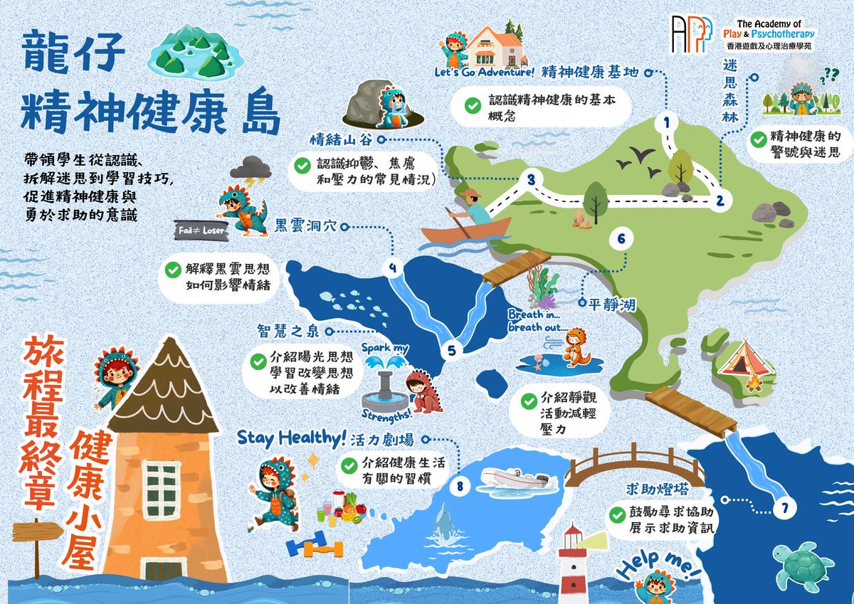 以「龍仔」為探險 嚮導,帶領學生探 索精神健康基地、 情緒山谷等八個小 島,認識精神健 康、拆解迷思並掌 握技巧