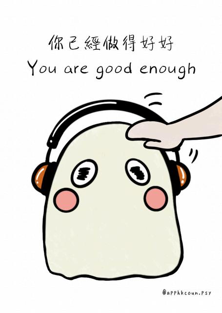 無 論 你 是 六 十 分 、 八 十 分 , 你 都 可 以 肯 定 自 己 的 付 出 。 你 已 經 做 得 到,你已經夠好了,you are good enough 你知道嗎?