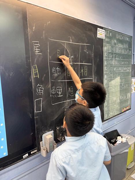 *學童透過填上特定字詞或某部首的字來完成中文過三關。