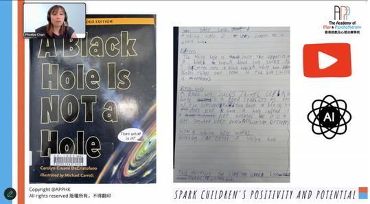 *講者正在分享一位SEN學童自發性完成的閱讀報告。