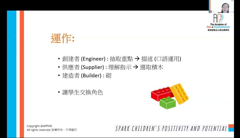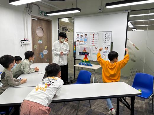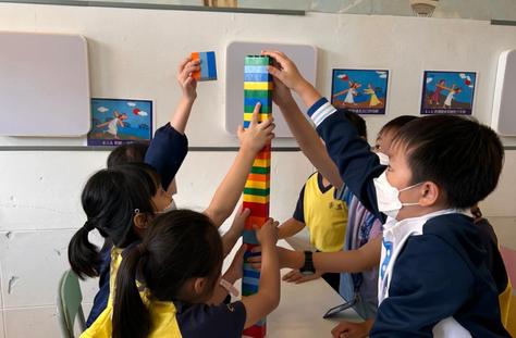 *學童們正在合作利用積木建造高塔,在過程中,他們需要不停商議,提出建議並調整方法,當中會運 用到團體合作、社交溝通技巧和情緒調節能力。