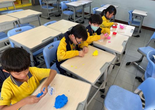 *學童在用泥膠造出文字,以多感官的方法作教學。