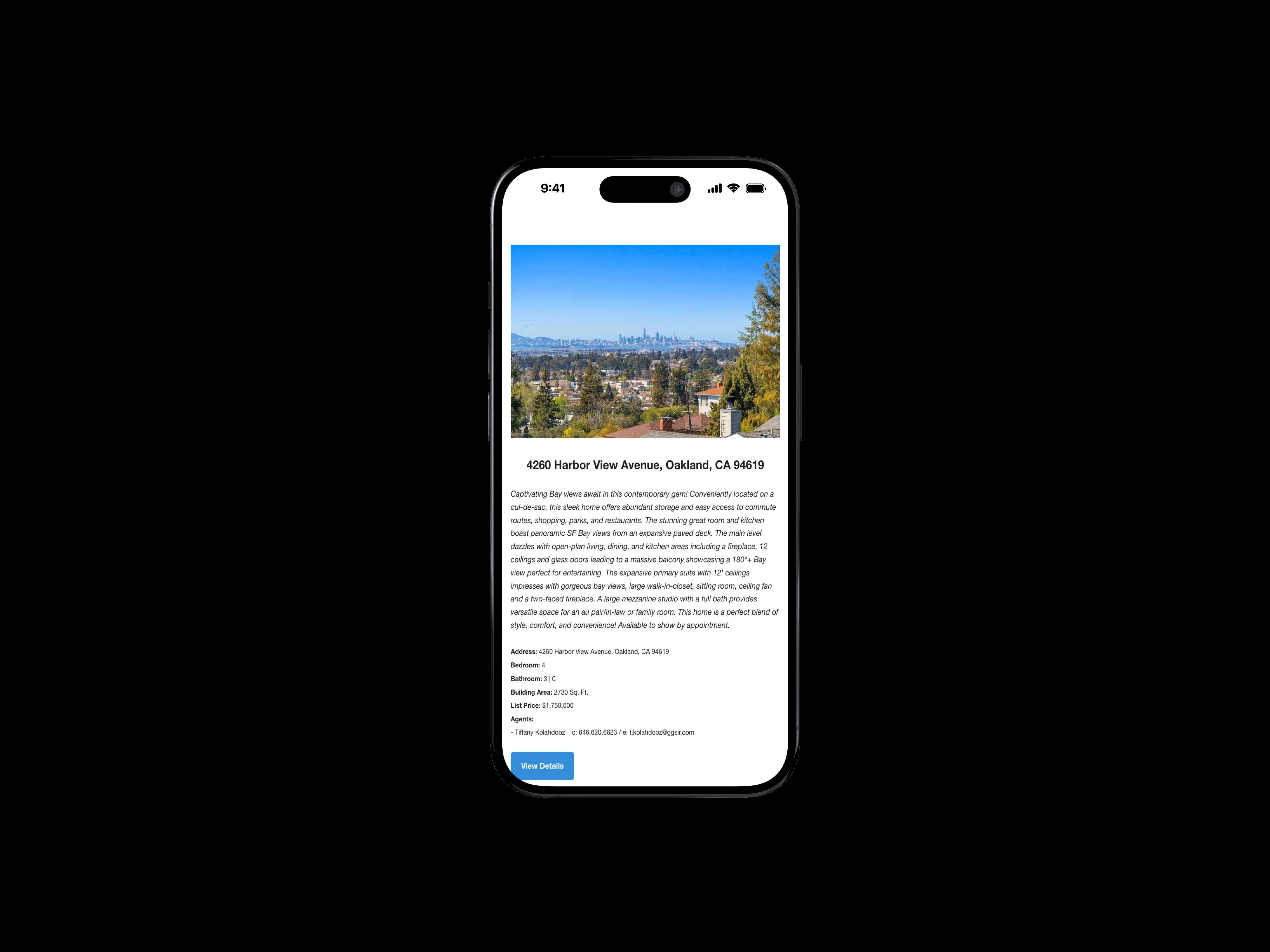 - The listing will be shared with top agents in Marin, San Francisco,and other key markets