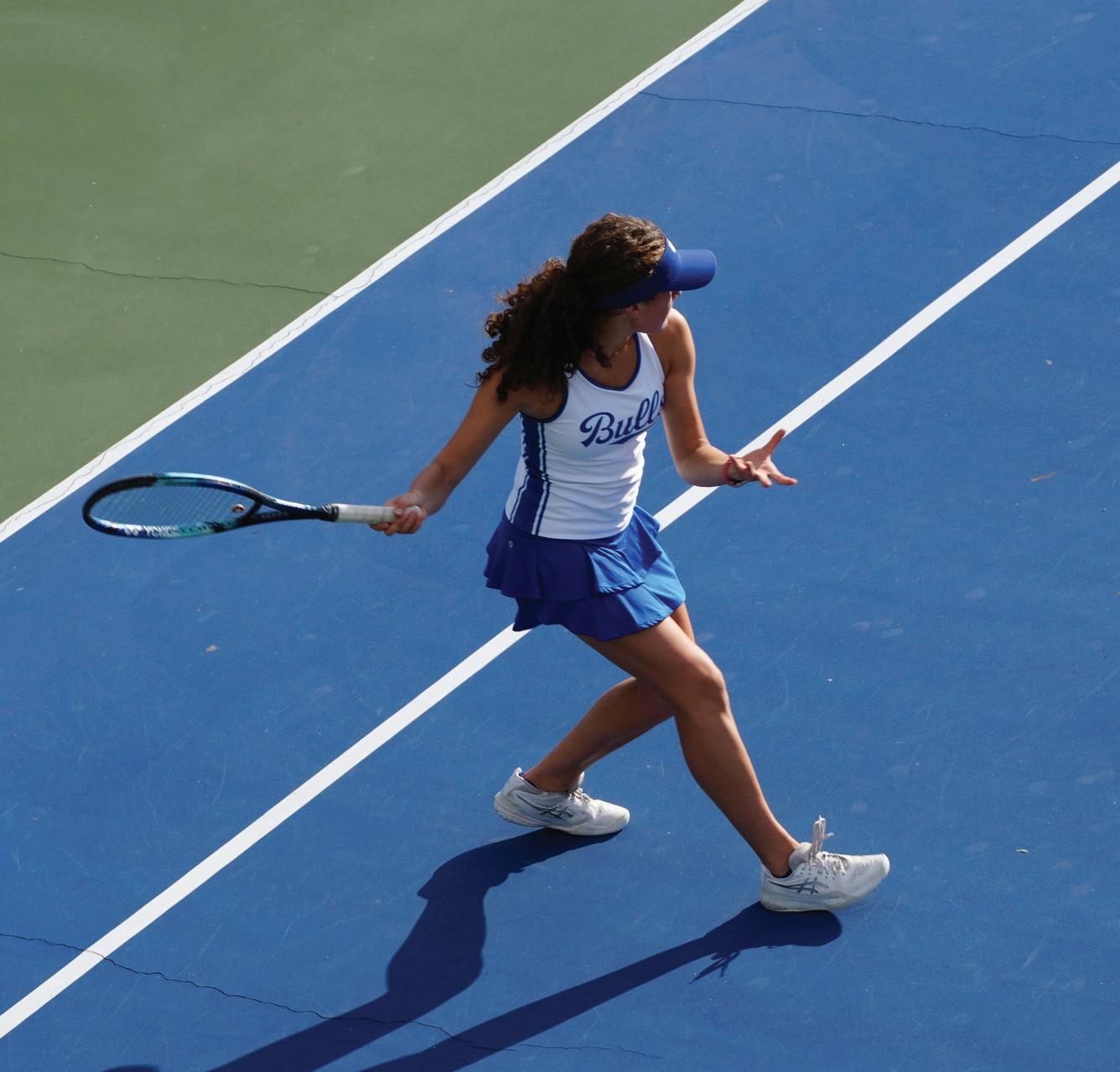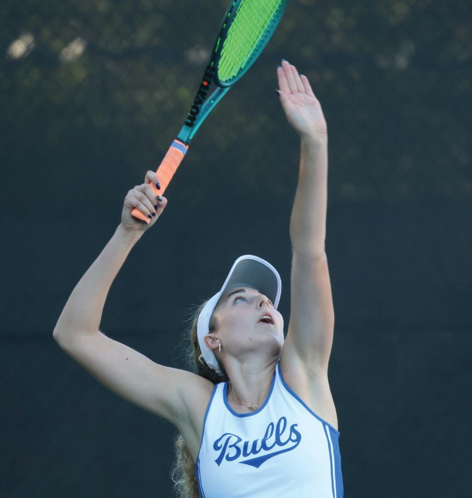 Singles play was marked by consistency and dominant shot-making. At Singles #1, Sienna Yang set the tone early, overpowering her opponent 6–0, 6–1. Simone Schachter followed at Singles #2 with a composed and steady performance, securing a 6–2, 6–1 win. At Singles #3, Olivia Shekou continued the momentum, in a confident 6–0, 6–1 result. Sadie Winter kept the Bulls’ roll going with another commanding 6–0, 6–1 win at Singles #4.