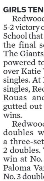 At Singles #4, Kaylee Jiang put up a steady fight, keeping rallies long and disciplined before ultimately falling 6–2, 6–2. Sienna Yang, at Singles #3, kept the opening set tight but couldn’t hold off Redwood’s momentum, losing 6–4, 6–1. At Singles #2, Paloma Vano-Rice pushed her opponent to a second-set tiebreak before narrowly dropping a 6–4, 7–6 (8) decision. Singles #1 ended prematurely, with Katie Warrin retiring while trailing 3–0.