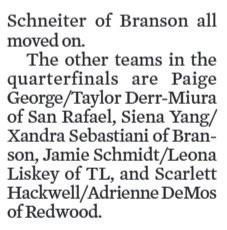 Xandra Sebastiani & Kaylee Jiang 0 1 #3 Doubles W L