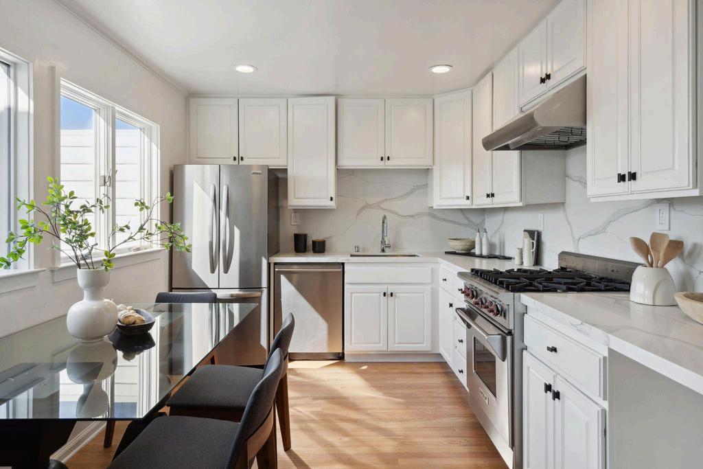 We revitalized this Bernal Heights home with a fresh coat of paint, new hardwood flooring, and elegant Calacatta countertops. The once dated kitchen, characterized by tiled floors, worn wooden cabinetry, and older appliances, was transformed into a bright and airy space that radiates modern sophistication This impressive renovation perfectly highlights the beautifully updated heart of the home This property received multiple offers and sold well above asking price