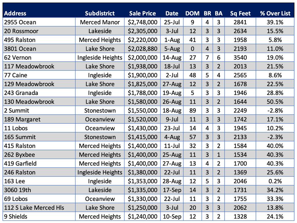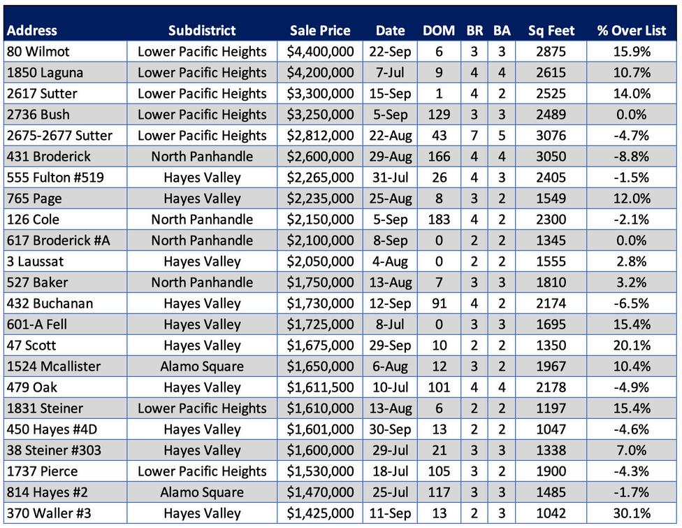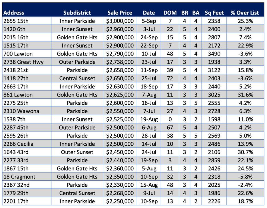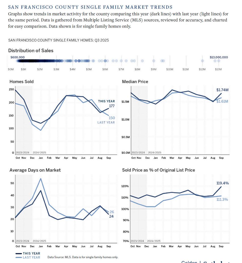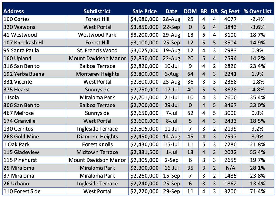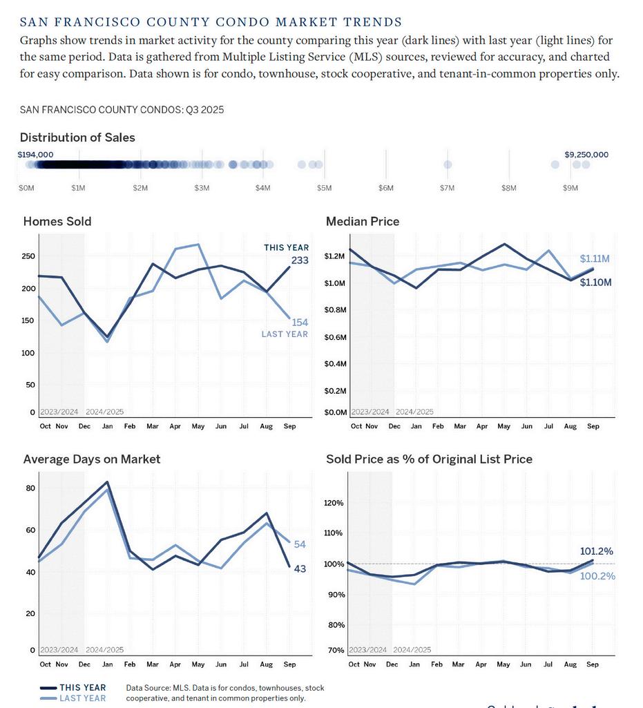 After a slow summer, home sales in SF jumped 28% in September, year-over-year Single Family Home prices in Q3 stayed about the same, year-over-year, while the median Condo sales price dipped Condo price per square foot remained about the same, indicating more sales of entry-level and pied-a-terre condos, as local office workers and second home buyers re-entered the market