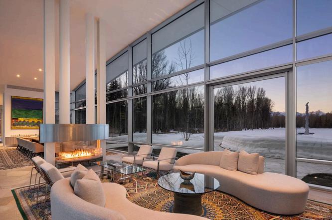 Situated on arguably the best parcel in Crescent H with expansive Teton views and prime Snake River frontage, this newly constructed project, completed in 2023 and designed by renowned architect Wallace Cunningham, is a living sculpture Its connection to its surroundings is profound, with the natural beauty of Fish Creek, Grand Teton views, and wildlife like elk, moose, and eagles enhancing its setting The architecture seamlessly integrates with the landscape, nestled into a stream curve, with a parallel pool reflecting both the mountains and the house The sweeping sculptural roof and lofty interiors blur the boundaries between indoors and outdoors, creating inviting spaces for private enjoyment or entertaining The formal entrance leads to a great room and a large office area, all surrounded by glass The private primary suite features large closets, a stone tub, and a walk-in stone shower with Teton views, followed by a stunning bedroom area Five private en-suite guest rooms occupy the southern end, adjacent to the main living area, professional-grade kitchen, and glass-enclosed formal dining area at the home's center The lower level includes an additional office, a wine storage room, and an attached three-car garage, completing the property