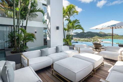 Set high above the iconic St Jean Beach, Villa Neo is an award-winning six-bedroom estate offering panoramic vistas and unparalleled luxury Ideal for extended families or gatherings of friends, this two-level masterpiece showcases an expansive main-level deck boasting outdoor living spaces, a movie screen, and one of the island's largest pools a sprawling 108-foot oasis, complete with an overflowing Jacuzzi