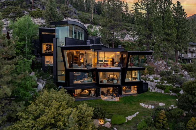 Architecturally significant and masterfully engineered, this nearly 10,000 sq ft residence is one of Lake Tahoe's most striking modern homes Designed by internationally acclaimed architect Mark Dziewulski, the estate is sculpted of glass and steel and perched above 98 feet of pristine Crystal Bay shoreline A commercial-grade elevator encased in glass, a five-story floating staircase of layered glass, and floor-to-ceiling windows that tilt the eye toward the lake every element is a feat of design and innovation