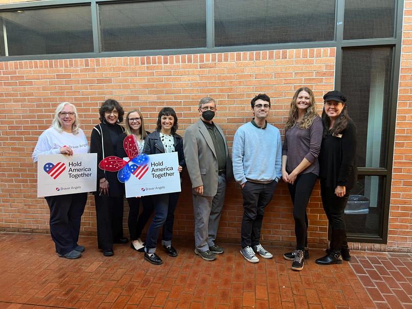 As I hung out with people nationwide in Zoom meetings (since we were in COVID lockdown), I learned more about the importance of depolarizing work. I got involved in doing the job by moderating both national and local skill-building workshops, co-facilitating a podcast called On the Other Hand, and developing and teaching a class for the department called Listening and Civil Dialogue, which looks at how we can improve intrapersonal, interpersonal, group, and public communication to build bridges across our differences, as we communicate in relationships with people we consider to be “other” than us. I also began developing research related to conflict resilience and conversational receptiveness and brought several Braver Angel depolarization workshops to campus and the local community. I have recently continued this work as a member of Cohort 4 of the National Civility Leadership Institute, sponsored by Renew America Together