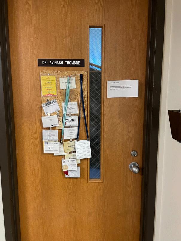On the sixth floor, we find the offices of other faculty, including Dr Gerald Driskill, formerly Graduate Coordinator, Dr. Julien Mirivel, who created the Positive Communication network, and Dr. Avinash Thombre, who brings our department's insights into media development and Intercultural Communication. Dr. Carol Thompson also has an office on the sixth floor.