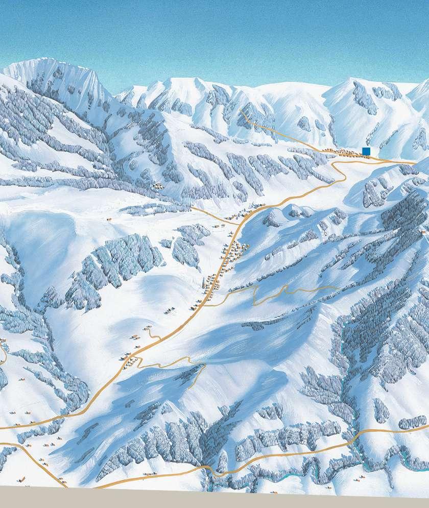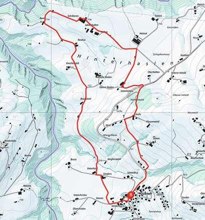 Wanderweg, besonders schön auch ohne Schnee (unpräpariert, vorwiegend auf Flurstrassen, gelbe Wanderweg-Markierung beachten)
