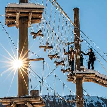 Der ZiplinePark ist wintertauglich und sorgt mit integriertem Seilpark und 25 Ziplines mit insgesamt 1‘210 Meter Länge für einzigartige Abwechslung und Nervenkitzel. Im Winter sind, je nach Wetter, zwei bis fünf Routen für dich geöffnet. Am Besten schaust du vor deinem Besuch auf der Website vorbei. Der Park ist auf den leichten Routen bereits ab 6 Jahren sowie einer Körpergrösse von 1.10m begehbar. Empfehlung: Handschuhe mitnehmen.
