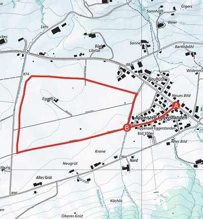 Stets flach führt der Weg nach den letzten Häusern des Quartiers über die offenen Felder der sogenannten Möser. Im Blick behält man den Alpstein, der sich aus schönster Perspektive und in seiner ganzen verschneiten Pracht zeigt. Parallel zu einer wenig befahrenen Strasse wendet sich der Blick gegen den Hügelzug des Hirschbergs mit seinen schönen, verstreuten Bauernhäusern. Zurück zum Ausgangspunkt geht es immer noch flach und sehr lieblich wieder gegen Eggerstanden zu. Romantisch ruhig liegen hier die Landschaft und das Dorf Eggerstanden. Das einzig wahrnehmbare Geräusch ist oftmals ein zügiger Wind, Schal nicht vergessen und zum Aufwärmen nach dem Spaziergang empfehlen wir eine Einkehr in einem der beiden Gasthäuser.