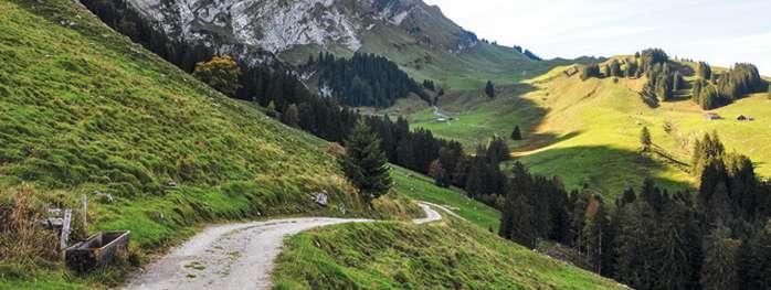 Der Rückweg führt abwärts zum Wissbach. Dort lohnt sich ein Abstecher zum nahen Leuenfall, wo sich der Berndlibach schäumend in die Tiefe stürzt. Bald danach erreichen Sie das Waldgasthaus Lehmen. Folgen Sie der Strasse knapp 500 m talauswärts bis zum Bauernhof Eugst, wo Sie links über Wiesland auf den Waldrand zuhalten und am tiefsten Punkt den Wissbach erneut überqueren. Schon bald erreichen Sie die erwähnte, idyllische Kapelle in Sonnenhalb und auf dem bereits bekannten Weg ziehen Sie dem Ziel Weissbad entgegen.