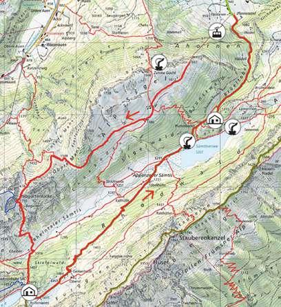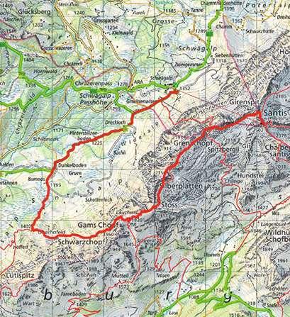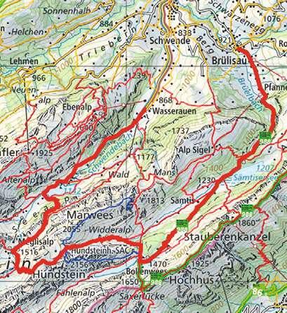 Zu sehen sind Versteinerungen. Verwitterungsformen, unterirdisch entwässernde Seen, Falten und Brüche. Besonders beeindruckend ist der berühmte Sax-Schwende-Bruch, wo die Verschiebung des Ostmassivs um ein paar hundert Meter deutlich zu sehen ist. Nach einem kurzen Abstieg von der Saxer Lücke erreichen Sie das wunderbar am Fählensee gelegene Berggasthaus Bollenwees, wo der geologische Wanderweg endet. Der Weg zurück ins Tal führt entweder via Sämtisersee und Berggasthaus Plattenbödeli oder via Rainhütten und Berggasthaus Ruhesitz nach Brülisau.