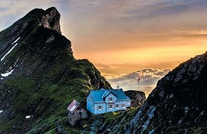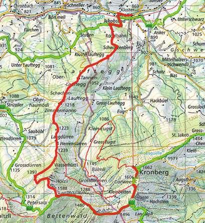 Über saftig grüne Wiesen führt der schmale Weg ab Weissbad hinauf zum Rechböhl und weiter im schattigen Wald aufwärts bis auf den Klosterspitz, einem auch bei vielen Einheimischen sehr gerne besuchten Aussichtspunkt. In einen weiten Talkessel gebettet, liegt nördlich das Dorf Appenzell, gegen Südosten blicken Sie hinab ins liebliche Schwendetal. Vorbei an den Hütten der Neuenalp führt der Weg weiter durch ein landschaftlich höchst wertvolles Hochmoor von nationaler Bedeutung mit malerischer Feuerstelle. Anschliessend wandern Sie zu den Alpen der Vorderen und der Hinteren Wasserschaffen. Lassen Sie den Blick nördlich zur mächtigen Säntiskette mit Ebenalp, Schäfler, Altenalptürmen, Öhrli und Säntis schweifen. Vorbei an Hütte und Stall der Alp Blatten erreichen Sie das Berggasthaus Scheidegg. Gönnen Sie sich eine typische Appenzeller Spezialität in der heimeligen Gaststube oder auf der herrlichen Terrasse, bevor Sie den letzten Anstieg in Angriff nehmen. Das letzte Wegstück führt vorbei an der besonders schön gelegenen Kapelle St. Jakob hinauf auf den Kronberg. Hinab ins Tal nach Jakobsbad bringt Sie knieschonend und elegant die Luftseilbahn.