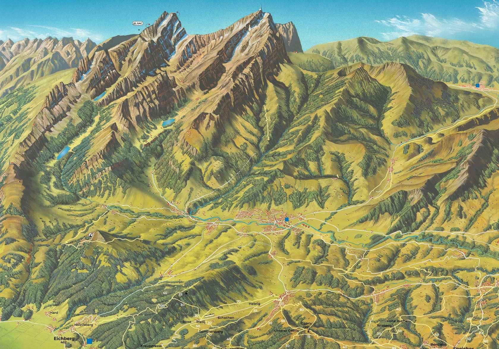 Nachdem Sie mit der Seilbahn in die Höhe geschwebt sind, gilt es als erstes, die fabelhafte Aussicht zu geniessen. Gegen Südosten dominiert die nördlichste Alpsteinkette mit Säntis, Öhrli und Schäfler und in Richtung Norden erstreckt sich das Appenzellerland bis zum Bodensee. Um das Aussichtserlebnis in aller Ruhe auszukosten, laden nebst zahlreichen Bänken auch Ruheliegen rund um den Gipfel zum Verweilen ein. Von der Bergstation gelangen Sie auf der breiten Krete, vorbei am Gipfelkreuz, leicht abwärts zur Jakobskapelle. Auf dem Weidegebiet der Alp «Gross Chenner» wandern Sie auf dem historischen Jakobsweg zur Jakobsquelle. Trinken Sie vom frischen, kühlen Jakobswasser. Gleich bei der Quelle steht an der Stelle der alten Jakobskapelle der Bildstock mit der Figur des heiligen Jakobus. Bevor Sie zurück zur Bergstation der Luftsteilbahn gelangen, durchwandern Sie aufwärts ein idyllisches Fichtenwaldstück mit teilweise bizarren Astformen. Nach der Meisterung dieses wunderschönen Aufstiegs erwartet Sie nebst einer Einkehr auf dem Gipfel, die Fahrt zurück ins Tal und dort die Erlebniswelt mit Bobbahn, Zipline-Park und Märliwelt.